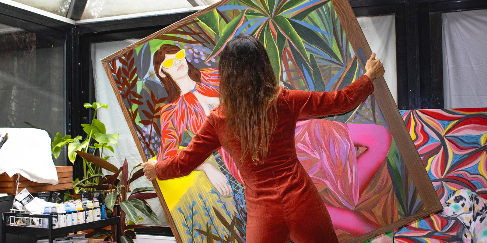 Avec "Coco", Azucena Gonzalvez livre une scène estivale à la fois kitsch, sensuelle et décalée. Sous ses airs de dolce vita, ce tableau célèbre la féminité libre et le second degré tropical 🐊