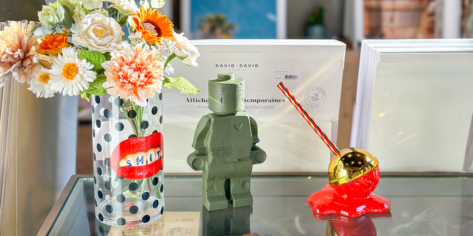 Chez Atelier 325, chaque création est une pièce unique, faite à la main, reprenant la forme iconique d’un Lego, déclinée en plusieurs couleurs.